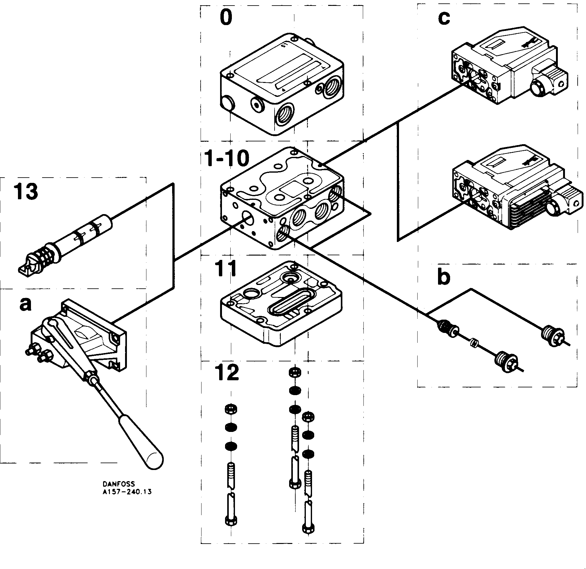 This topic lists the options available for assembling the parts which make up a hydraulic control valve bank for control of Sidelifter crane arms.