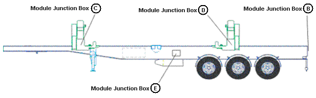 The figure below shows the location of the electrical junction boxes on the Sidelifter. The state of the LEDs in the E box, and the C and D boxes can be used for initial fault finding.