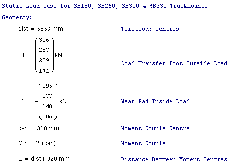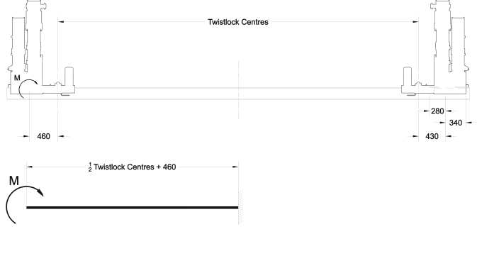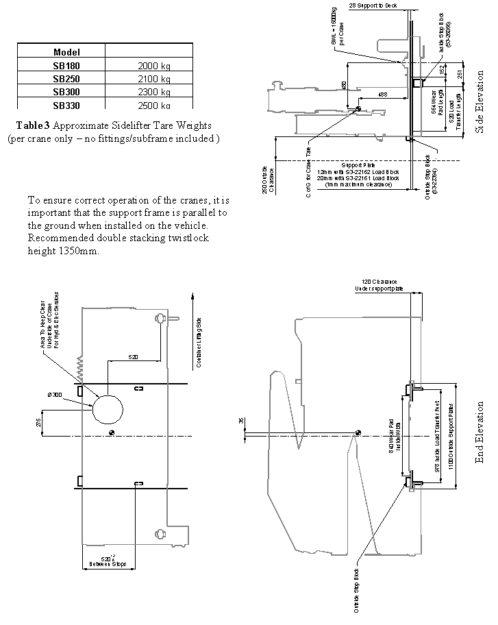 The design of the support frame or chassis is required to be stiff enough to prevent excessive deflection at the lifting pin (G Pin) on the crane. As long as the deflection at each crane due to the loads specified above, does not exceed 25mm at a height of 4180 above the support flange, then the correct operation of these units will be ensured.