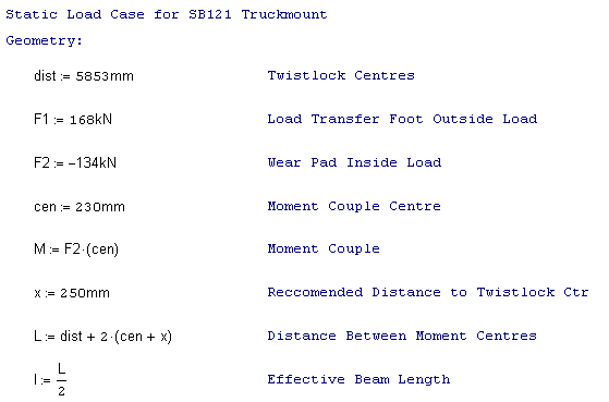 Note this calculation does not account for the horizontal loads. These would have less effect on the chassis & sub-frame loading due to the spacing of the rails. But these need to be considered when detailing the attachment of cleat plates, etc. |