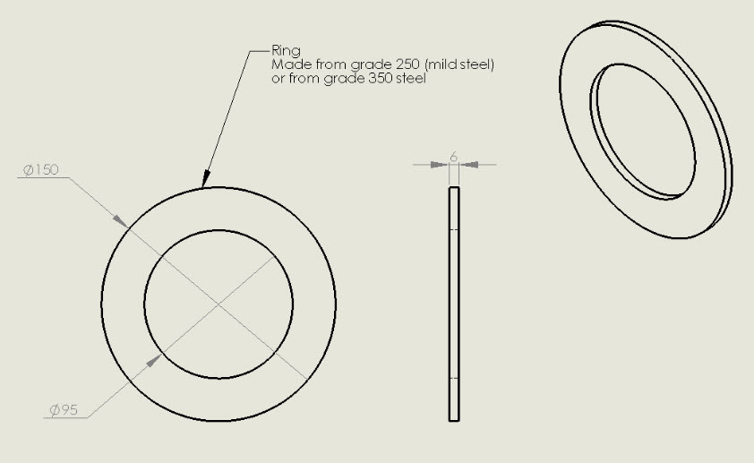- Cut out a ring from 10mm steel plate. The plate maybe of the following grades; Grade 250 or Grade 350. The ring should be to the dimensions in figure 1.