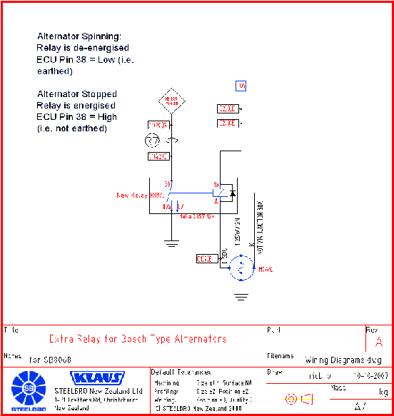 The SMARTlift Alternator monitoring circuit requires an additional relay if a Bosch Alternator is fitted. Refer to circuit diagram below for information.