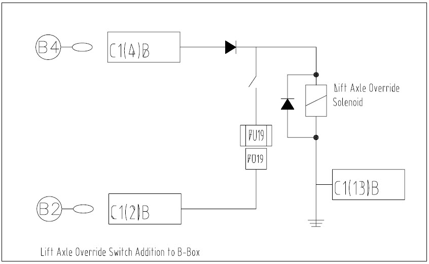 This is a safety related change to protect technicians from unexpected raising of the lift axle during wheel changing operations.