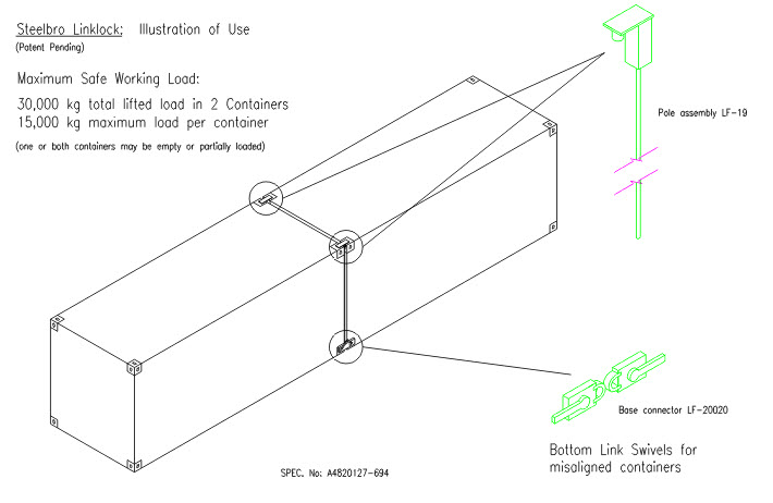 operator to lift 2 x 20 foot containers on and off the sidelifter by linking their abutting corners