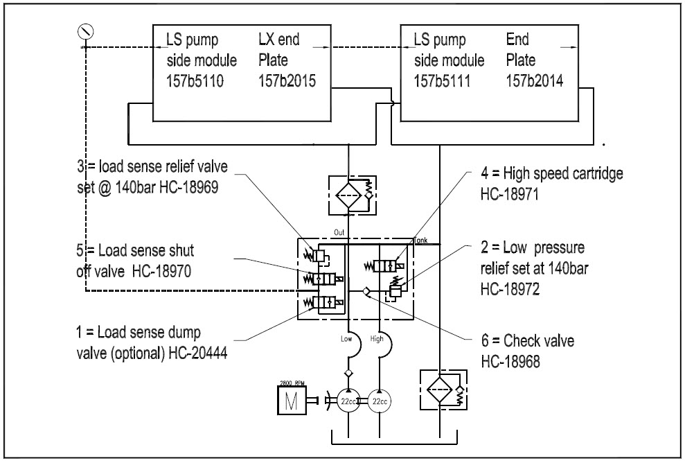energised the LS line is blocked to tank therefore allowing the hydraulic system to operate.