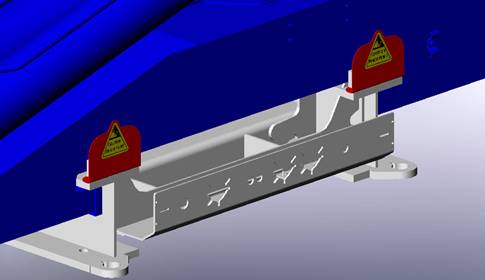 A finger guard has been introduced to reduce the risk of trapping fingers between the crane base and traverse stop blocks on the front and rear of the chassis. Each stop block will have a guard fitted.