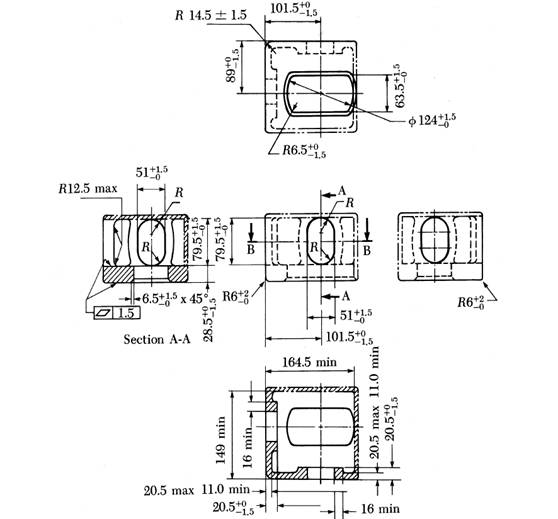 Figure 2 shows the manufacturing sizes for the corner castings used for ISO shipping containers. The size tolerances for these castings are compatible with Sidelifter lifting hooks and chains.