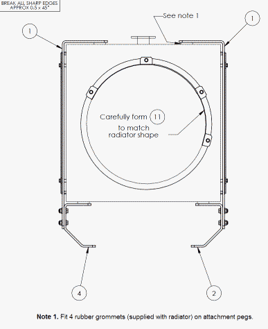 The stone guard is designed for centre mounted power pack engines to prevent stones entering the fan and causing damage to the radiator core.
