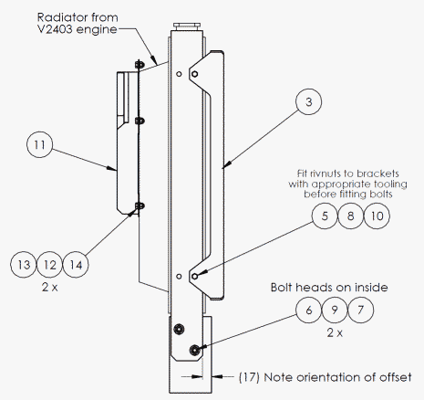 Bracket Lower Radiator V2403-M RH |