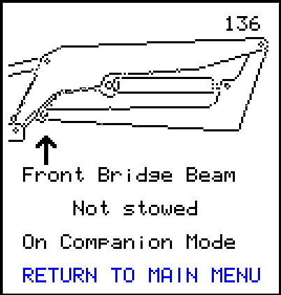 If you try to deploy the Outer Leg in On Companion mode and you have not fully stowed the Outer Leg to the Bridge Leg Beam base then SmartLIFT will display message 136 (Front stabiliser) or 137 (Rear stabiliser):