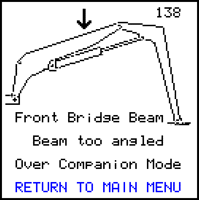 If you deploy the Outer Leg in Over Companion mode and the Outer Leg foot is significantly higher than the ground at the base of the Bridge Leg Beam then the Bridge Leg Beam will be at too high an angle for operation. SmartLIFT will display message 138 (Front stabiliser) or 139 (Rear Stabiliser) :