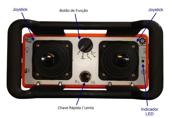 4 botões para posição Desligado / Modo Transversal / Modo Estabilizador / Modo de Braços. |