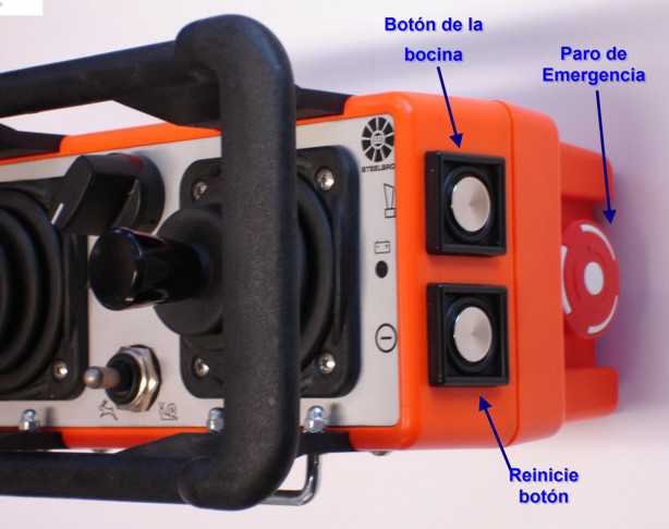 Presione para detener todas las operaciones. Para reiniciar las operaciones, el botón de paro de emergencia deberá ser girado en el sentido horario para liberarlo. |