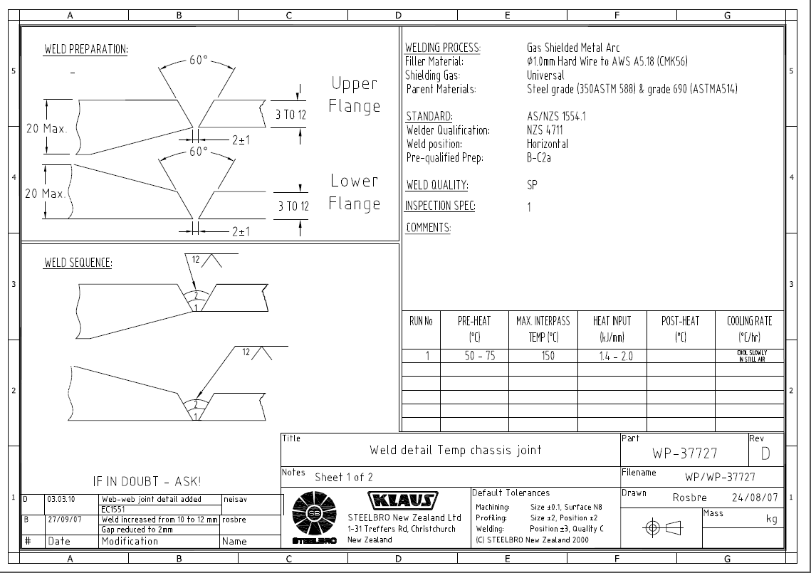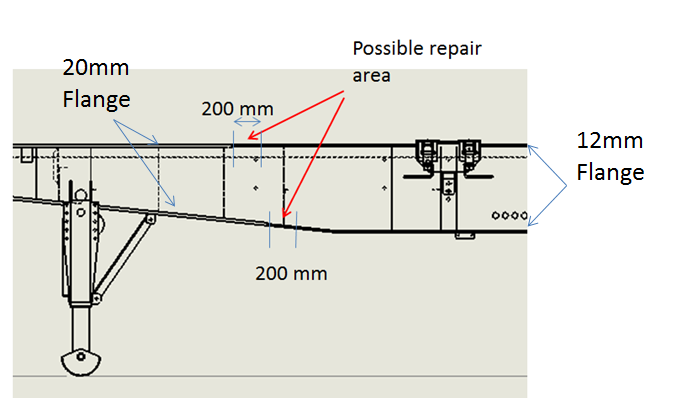 - If the weld gap (between the 20 mm flange and the 12 mm flange) is greater than 4mm a 200 mm section will have to be cut away from the rear non-conforming flanges and replaced with a longer section of flange (ST31660) that does meet the above requirements See figure 1