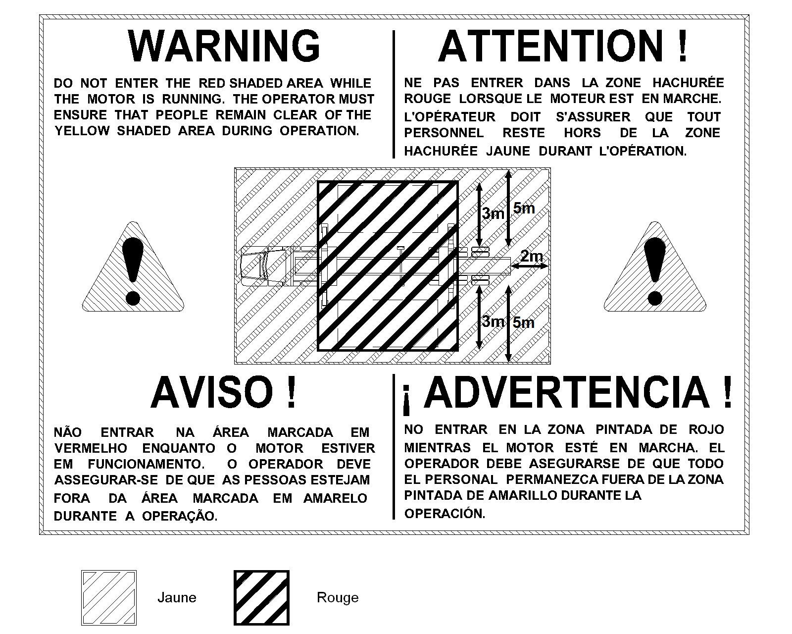 Durant les opérations, le personnel non-autorisé DOIT se tenir en dehors de la zone d'opération de la Sidelifter comme signalé par le panneau de zone dangereuse.