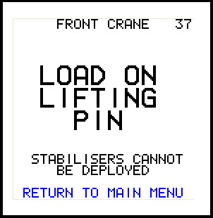 Stabiliser mode is disabled if there is any load on the lifting pin and a warning sound (the horn) and screen message is displayed