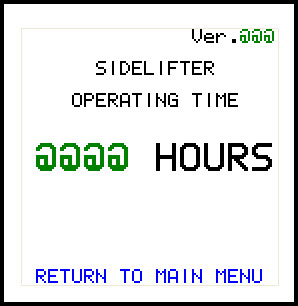 The operating time of the Sidelifter is available from the LCD display screen by navigating to the Operating Time menu item. Refer to Accessing the menu structure.