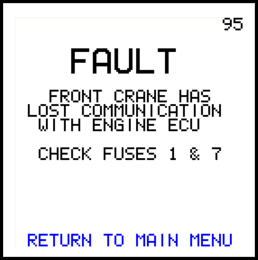 The front crane ECU has lost communication with the engine ECU