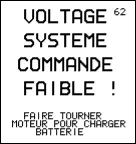 Si ce message apparaît durant le fonctionnement de la machine, vérifier que l'alternateur fonctionne correctement.