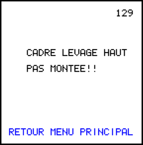 - Si le cadre de levage par le haut est branché et ce message apparaît, c'est qu'il n'y a pas de communication entre l'ECU avant et les contrôleurs du cadre de levage par le haut.
