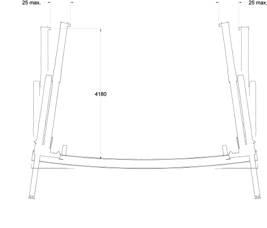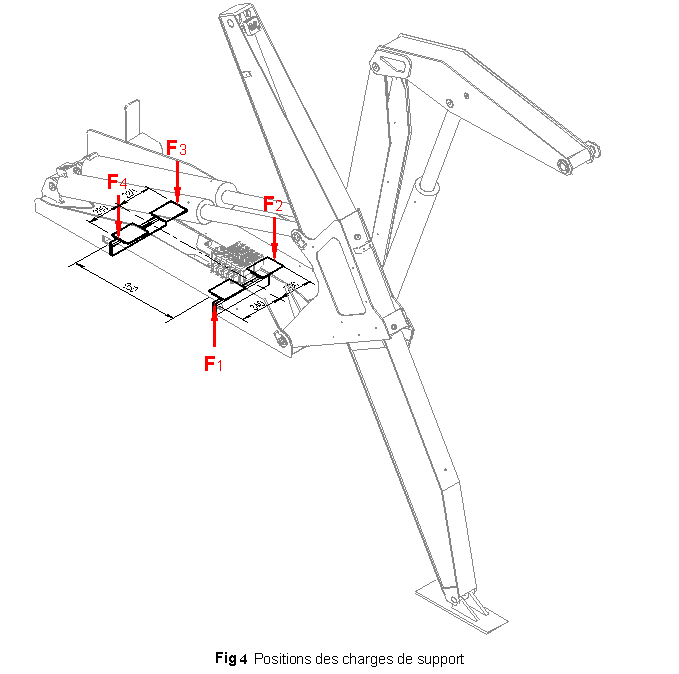 La structure du faux-châssis ou du châssis porteur doit être très rigide afin d'éviter une déflection excessive au niveau de l'axe de levage qui se trouve sur la grue. Le travail des grues se fera en toute sécurité, à partir du moment où la déflection de chaque grue sous le poids des charges specifiées ci-dessous ne depasse pas 25mm à une hauteur de 4180 au-dessus de la broche de support, alors l'opération correcte de ces machines sera assurée.