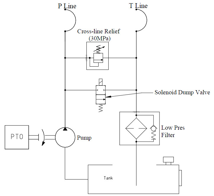 Figure 1: Schéma pour circuit de pompe prise de force (PTO) typique.