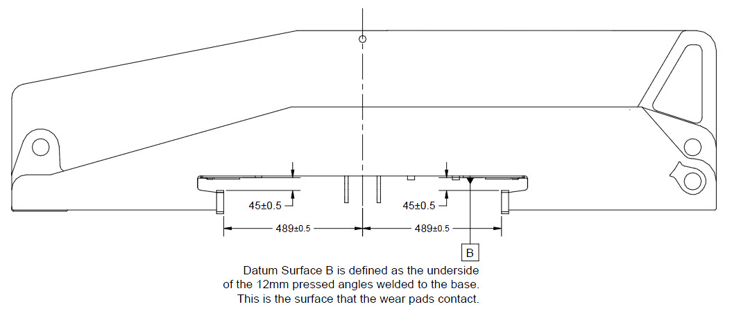 - Si trop de matériau est retire des plaques de base de grue, alors un doubleur de 8mm en acier de 690 MPa devra être monté sur l'aile afin d'assurer une force adéquate du matériau.
