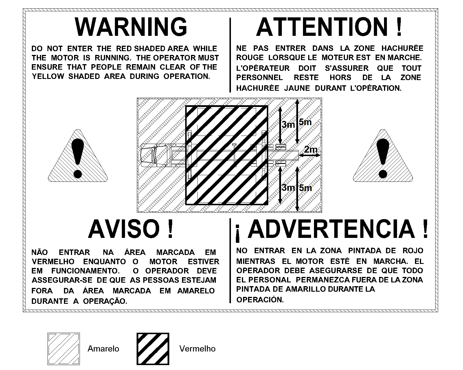 Durante operações, qualquer pessoa não autorizada DEVE se manter fora da área de funcionamento do Sidelifter, como mostrado na placa de Advertência de Zona Perigosa.